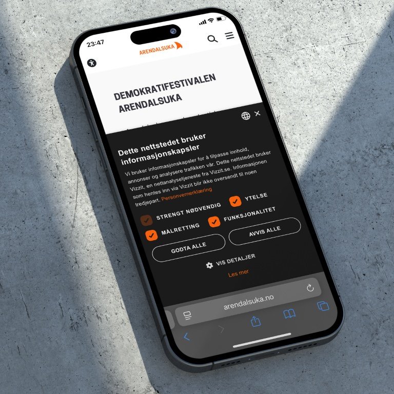 Fra 1. januar 2025 kom det nye krav til norske nettsider. Nå er det ikke lenger nok å informere om at man bruker informasjonskapsler. Du må ha samtykke fra de som besøker nettsiden din, og det samtykket må du skaffe på riktig måte, slik som arendalsuka.no gjør i bildet i denne artikkelen.